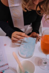 Jesmonite is a hands-on, satisfying medium that’s become a studio favourite, and once you try it, you’ll see why. Our Jesmonite Casting Hens Party is a fun activity that everyone will love. Your group will get to browse different moulds and cast their own jesmonite project. Moulds including heart-shaped trinkets, clamshell trinkets, starfish trinkets, oval trays, round bowls, candle-stick holders, coasters and more.